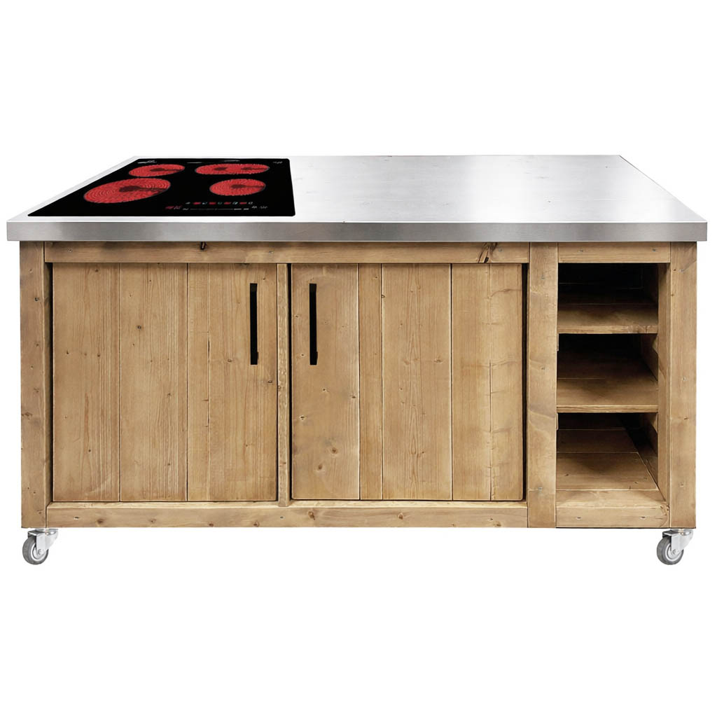 - Massiv gebauter Grilltisch / Grillwagen mit Unterschrank mit 4-erKochfeld (Gas oder Glaskeramik)