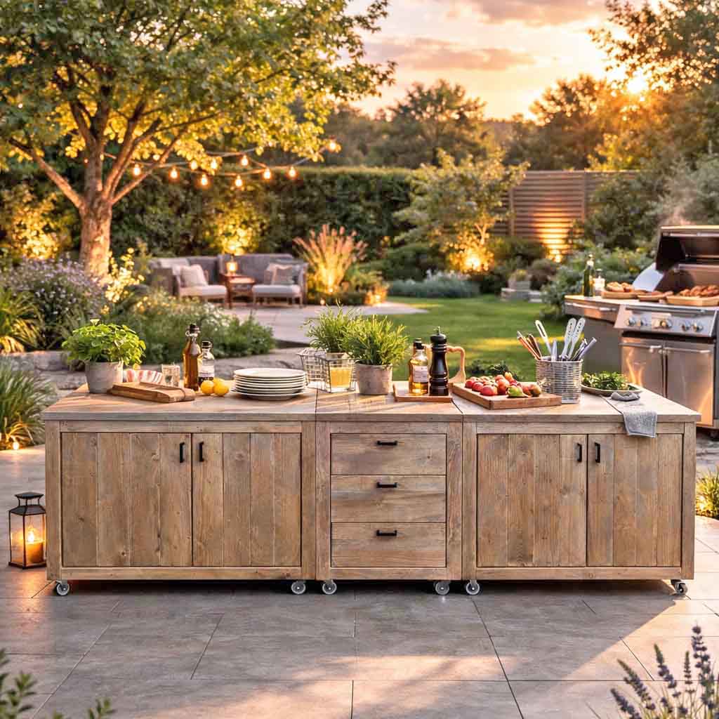 Funktionale Outdoor Küche und BBQ Möbel im Bauholz-Stil