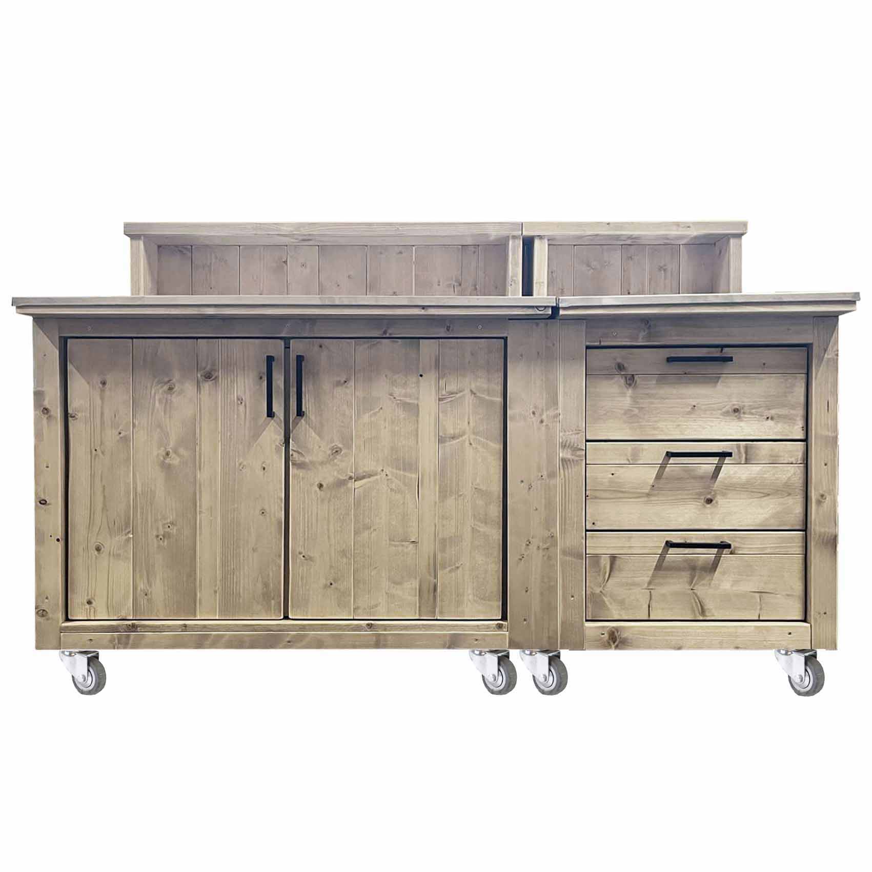 Die PERTHONE WOOD TWO TOP ist eine edle Outdoorküche im Bauholz-Style, die rustikales Design, praktische Funktionalität und langlebige Handwerkskunst perfekt kombiniert. Gefertigt aus massivem, wetterfestem Bauholz, ist dieses Möbelstück ein echtes Highlight für Garten, Terrasse oder BBQ-Bereich.