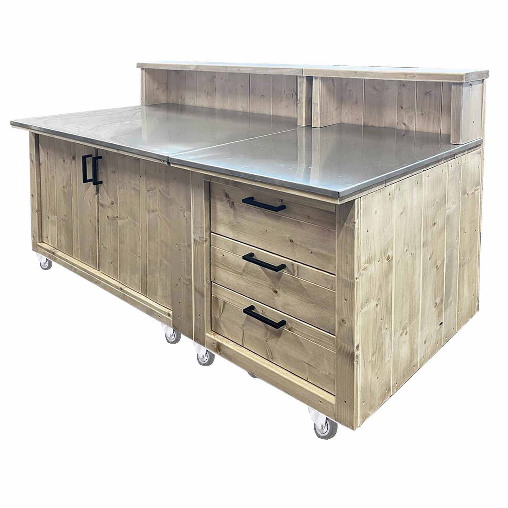 - Höhe: 90 cm incl. Rollen (Höhe mit Theken-Aufbau 120cm)