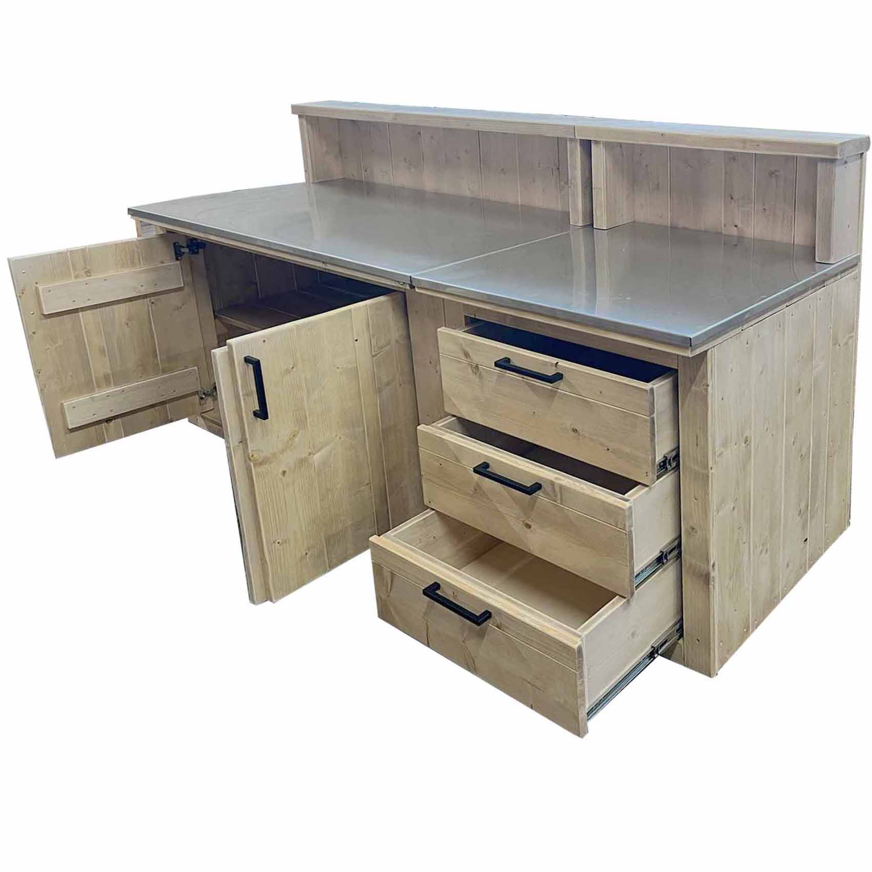 - Arbeitsfläche wahlweise aus Holz oder Edelstahl