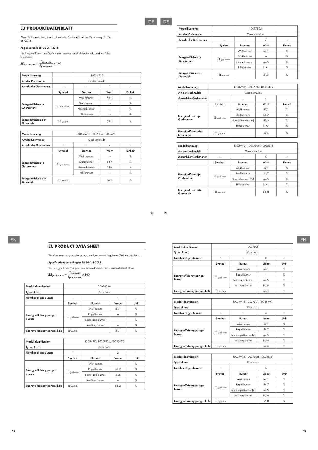 - für Flüssig- oder Erdgas, werkseitige Einstellung auf Erdgas 20 mbar, umrüstbar auf (Gasflasche) LPG Flüssiggas 50 mbar