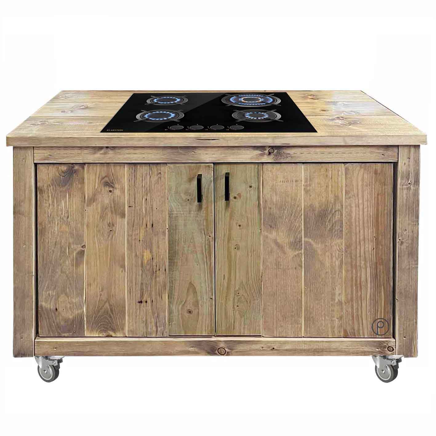 Grilltisch - Outdoorküchen-Modul mit 4-Zonen Kochfeld aus massivem Neuholz in typischem Bauholz Design