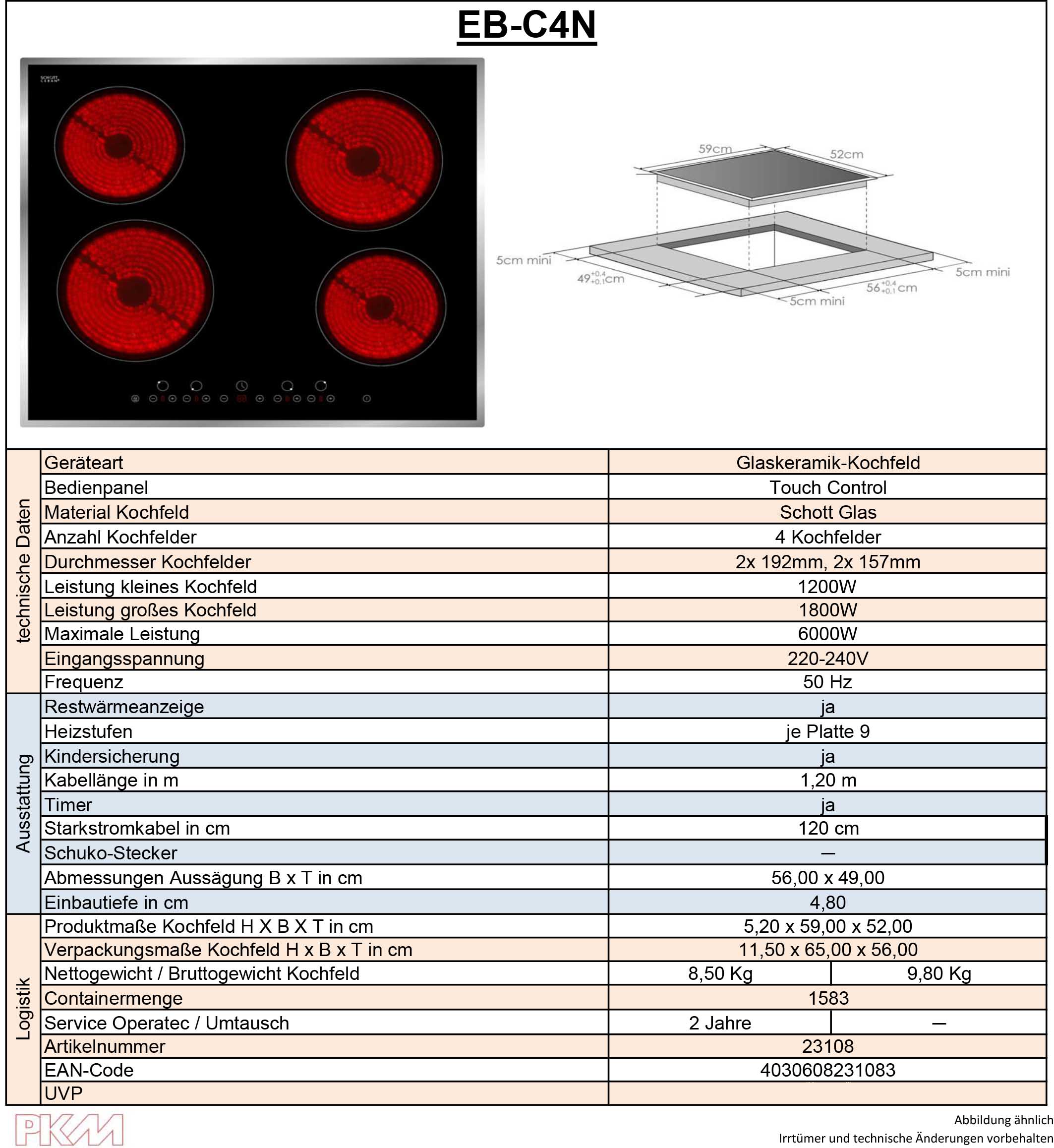 - Glaskeramik-Oberfläche mit Edelstahl-Rahmen
