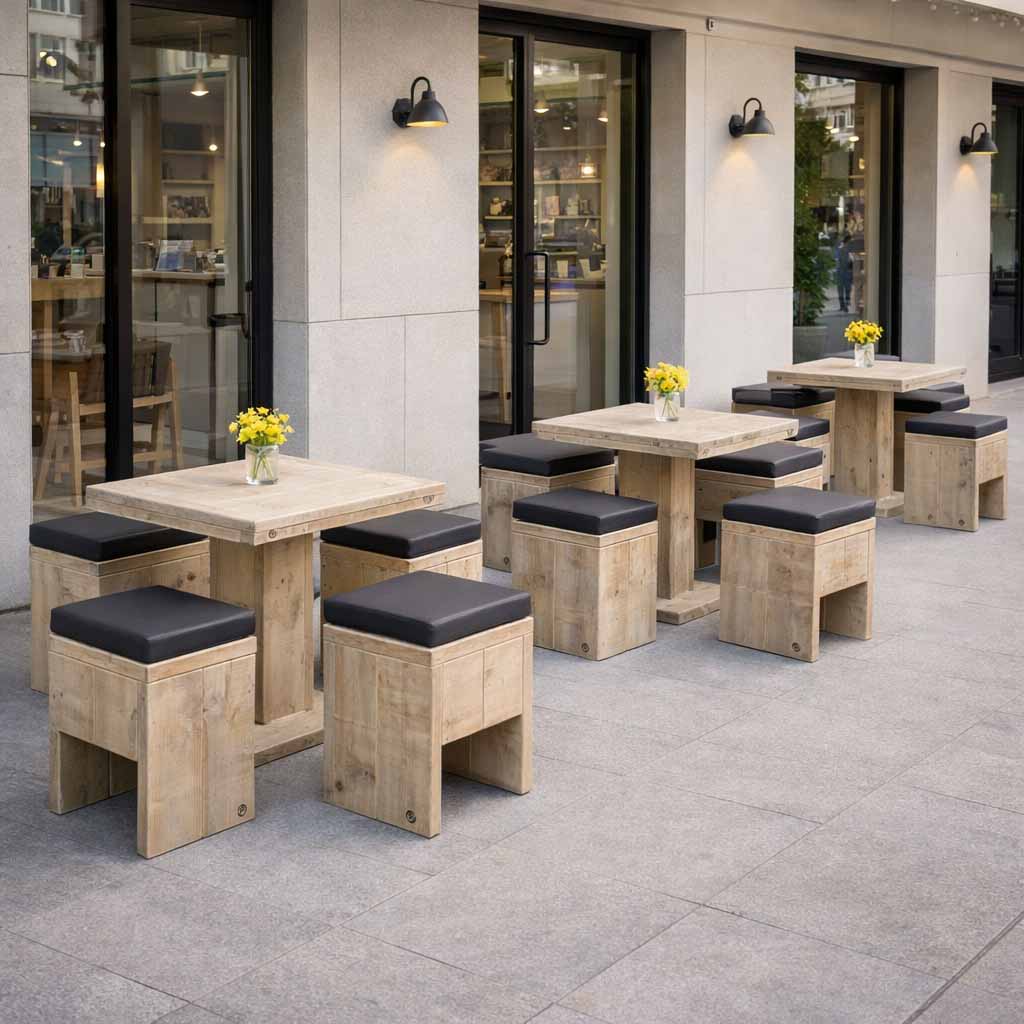 Stilvolles Bauholz Lounge- & Essplatz-Set für Garten, Terrasse & Gastronomie