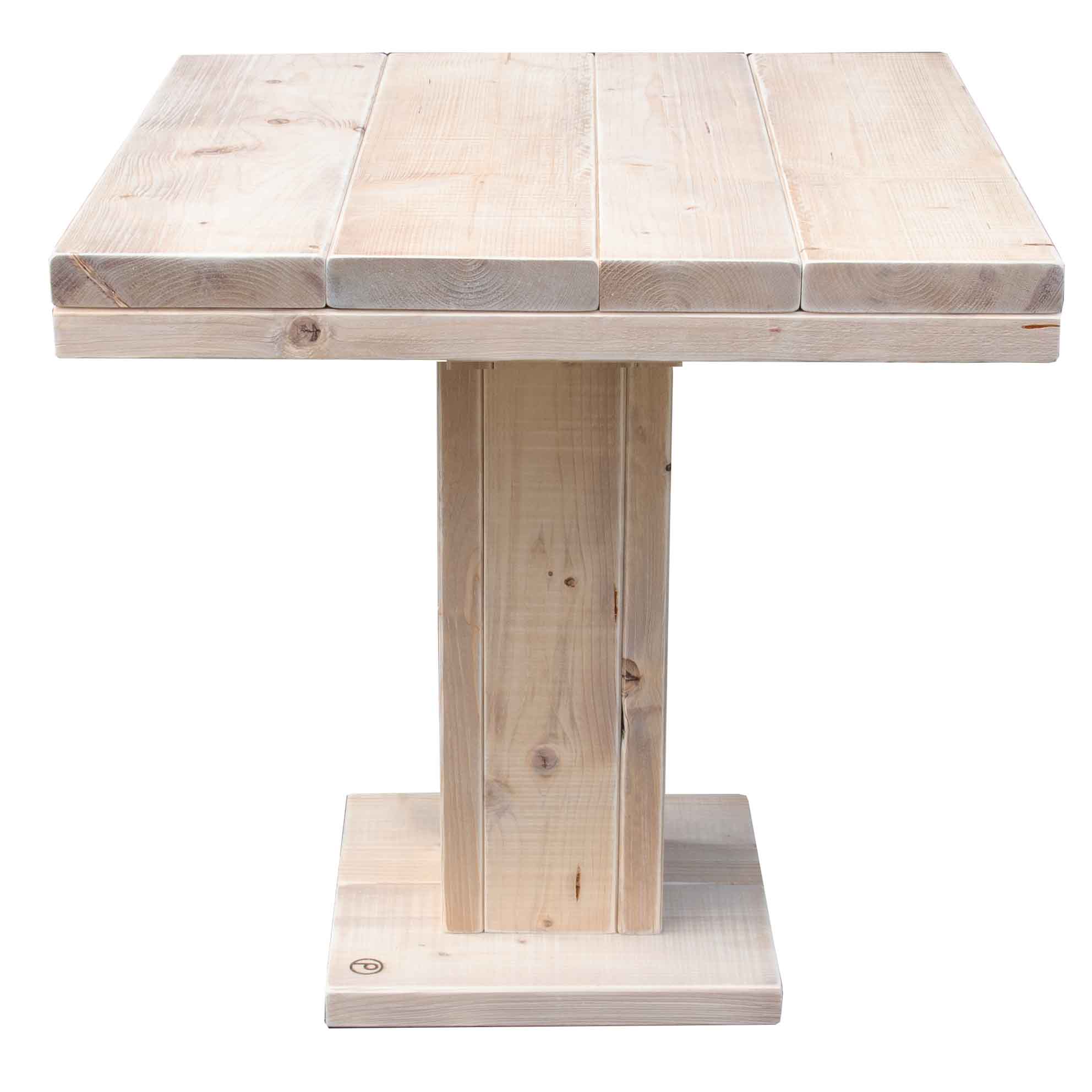 Bauholz Möbel: Esstisch mit 4 passenden Hockern (incl. Polster) aus Neuholz in typischem Bauholz LookDiese Esstisch Kombination besticht durch ihre massive Bauweise die durch 4 cm starke Fichte/Kiefer Bohlen erziehlt wird.Ein echter Blickfang nicht nur im Garten oder auf der Terrasse auch für die Gastronomie ein echtes HighlightHohe Verarbeitungs-Qualität und Witterungsbeständigkeit sprechen für sich.Pflegeleichte Kunstleder Polster (anthrazit) sind im Lieferumfang enthalten.Maße Tisch:Breite: 85 cm Tiefe: 85 cmHöhe: 75 cmTischplattenstärke: 8 cm (aufgedoppelt)Maße Hocker:Breite: 40 cm Tiefe: 40 cmHöhe: 45 cm(Maße, Gewicht und Farbgebung können materialbedingt minimal abweichen)Material:Fichte / Kiefer Bohlen 4 cm starkLieferzustand:Originalverpackt & NeuArtikel werden fertig montiert geliefertKunstleder Polster (anthrazit) im Lieferumfang enthaltenTisch und Hocker auch einzeln bestellbarVersand:Versandkosten (nach Volumen / Gewicht) sind im jeweiligen Warenkorb ersichtlichVersand auf Inseln und ins Ausland nur auf Anfrage