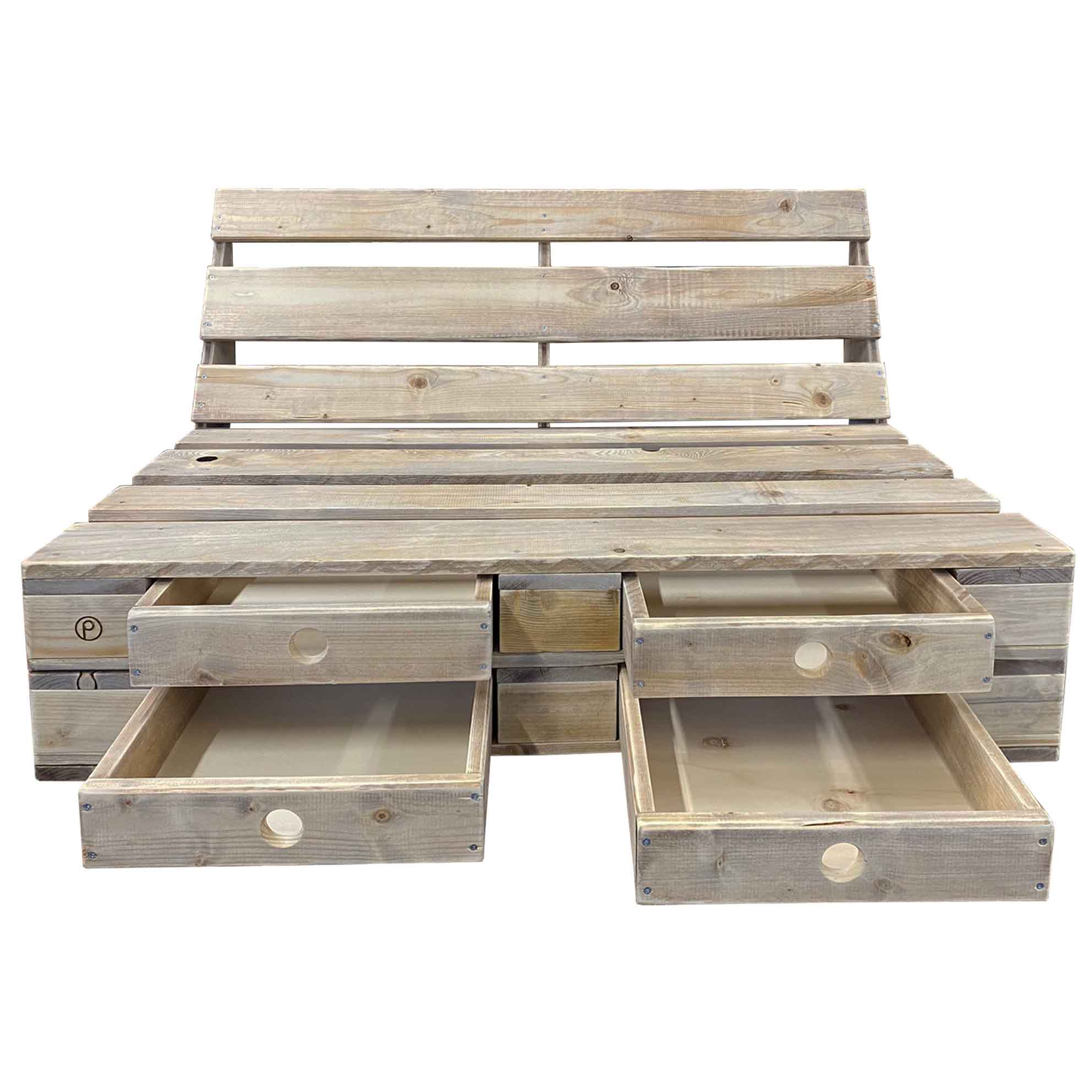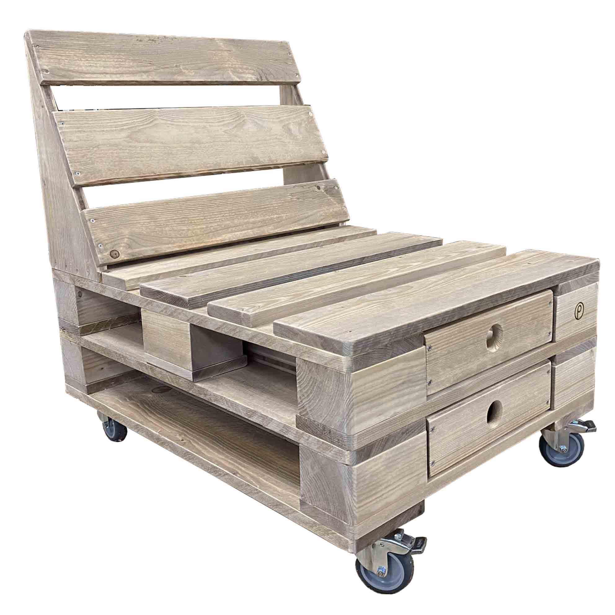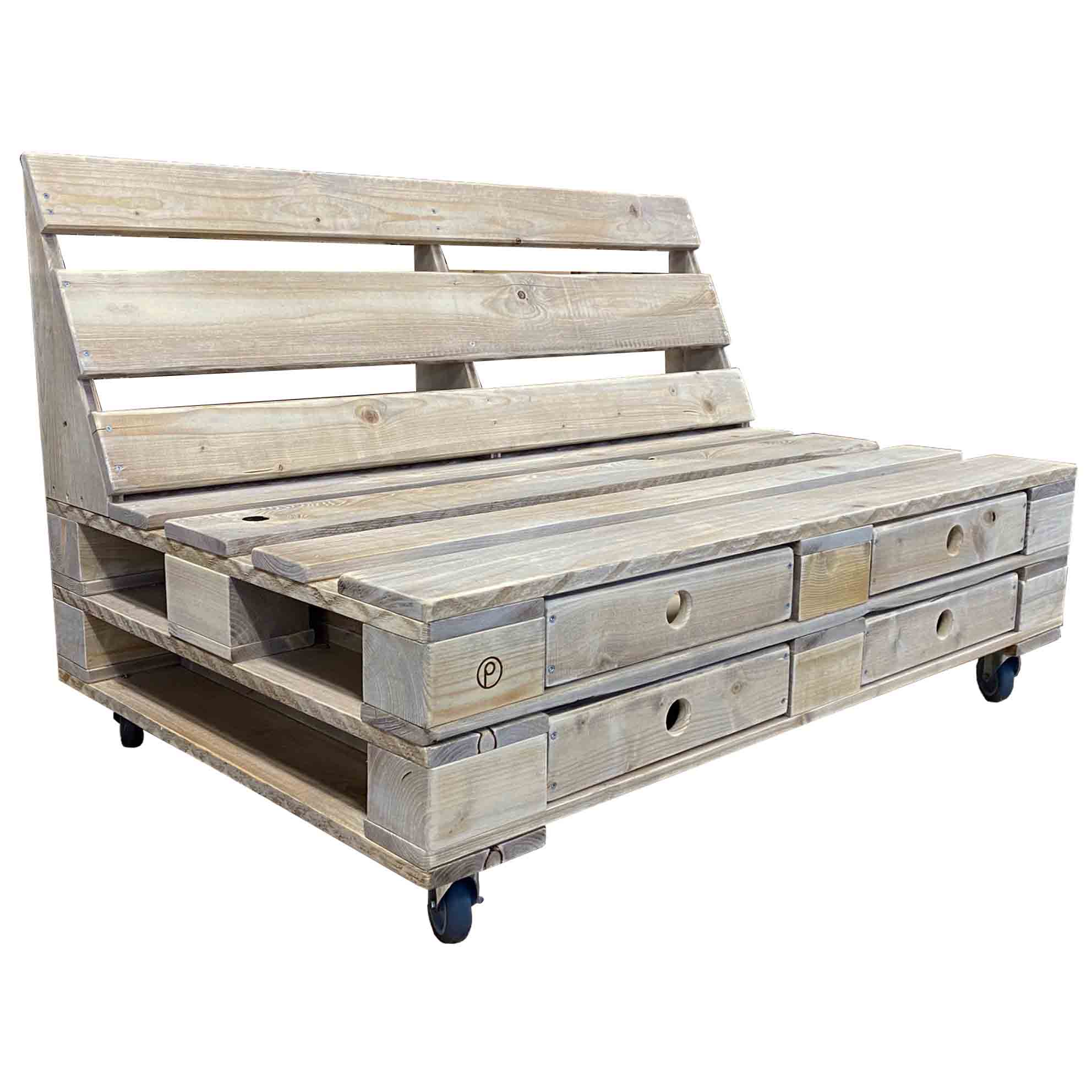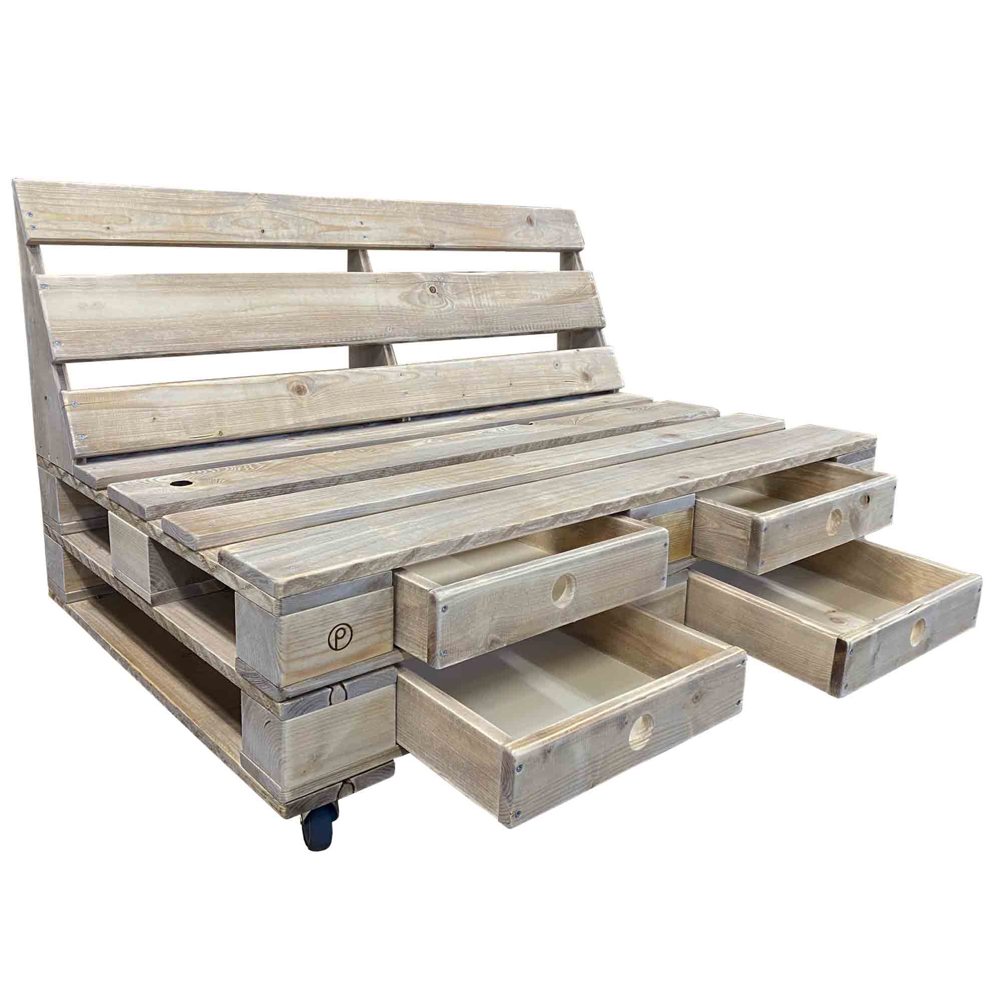 Palettenmöbel: Lounge Sofa, Paletten Sofa mit Schubladen in typischem Paletten Style, lieferbar in 2 Breiten