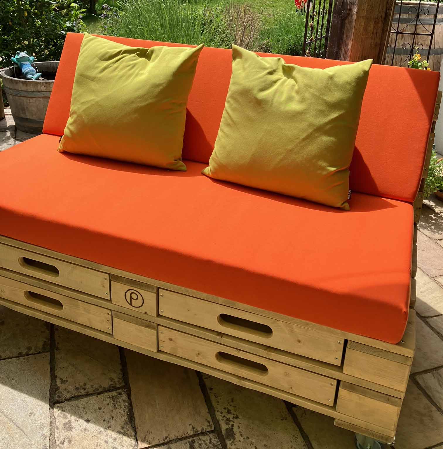 Palettenmöbel: "Old School" Paletten Sofa, mit senkrechter Rückenlehne in den klassischen Maßen gebaut. Drei in der Rückenlehne integrierte Ablagefächer bieten Platz für Getränke, Deko und vieles mehr.Dieses Sofa-Modul lässt sich perfekt mit unserem Sofa Eckmodul Art. 260295 kombinieren Auch im Komplett-Set incl. Polster bestellbar Die pass-genauen Polster lassen wir in einem Deutschen Handwerksbetrieb fertigen was auch hier den Qualitäts-und Preisunterschied rechtfertigt.Polsterschaum: 10 cm stark RG 33/60, bezogen mit Polstervlies. Die Bezüge sind mit Reißverschluss versehen und abnehmbar2 Bezugsstoffe stehen zur Wahl (siehe Farbkarten im Fotobereich)Microfaser "DENVER" - perfekt für den Indoor EinsatzMicrofaser "SORRENTO" - perfekt für den Outdoor Einsatzgewünschten Bezugsstoff / Farbe bitte im Bestellkommentar angebenMaße: Breite: lieferbar in 60 oder 120 cm (bitte bei Varianten wählen) Tiefe: 91,5 cm Höhe: 92,5 cm Sitzhöhe: 35 cm > erweiterbar auf 45 cm Höhe, siehe Zubehör Sitzfläche: T:80 Gewicht: 44 Kg Maße, Gewicht und Farbgebung können materialbedingt minimal abweichen Material: Neuholz Kiefer / Fichte, Standard Auslieferung in Vintage gebeizt unbehandelt natur gerne auf AnfrageAuf Wunsch auch mit neutralen Klötzen ohne Branding Eigenschaften: 4 Schwerlastrollen (davon 2 mit Feststeller) Belastbarkeit: 200 kg Massive Verarbeitung mit 16 Vollholz-Klötzen Optional: seitlicher Einschubtisch Lieferzustand: Originalverpackt & Neu Artikel wird fertig montiert geliefert (Ausnahme: Rollen liegen transportbedingt bei) Dekorationen im Lieferumfang nicht enthalten Versand: Versandkosten (nach Volumen / Gewicht) sind im jeweiligen Warenkorb ersichtlich Versand auf Inseln und ins Ausland nur auf Anfrage