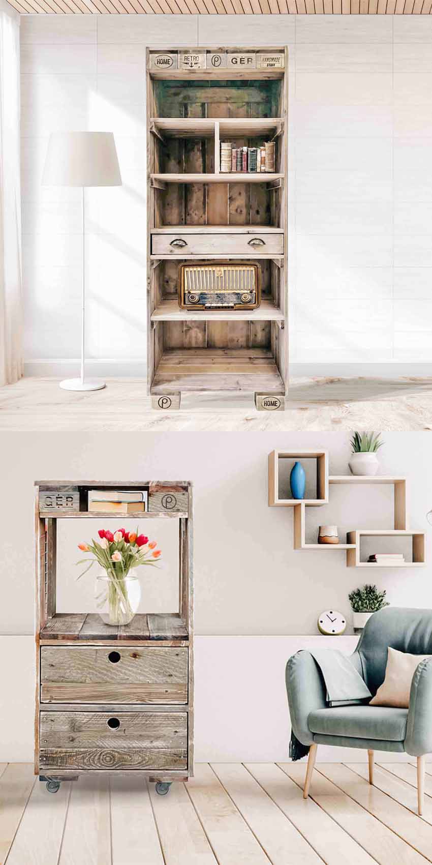 Unsere Kommoden, TV-Boards und Schränke bieten großzügigen Stauraum und flexible Nutzungsmöglichkeiten für Bücher, Mediengeräte, Kleidung oder Dekoration. Die Kombination aus offenen Fächern, Schubladen und Türen sorgt dafür, dass alles ordentlich verstaut ist, während die Möbel gleichzeitig durch ihr rustikales Design zum Blickfang in jedem Raum werden. Palettenmöbel verbinden praktische Funktionalität mit natürlicher Ästhetik.
