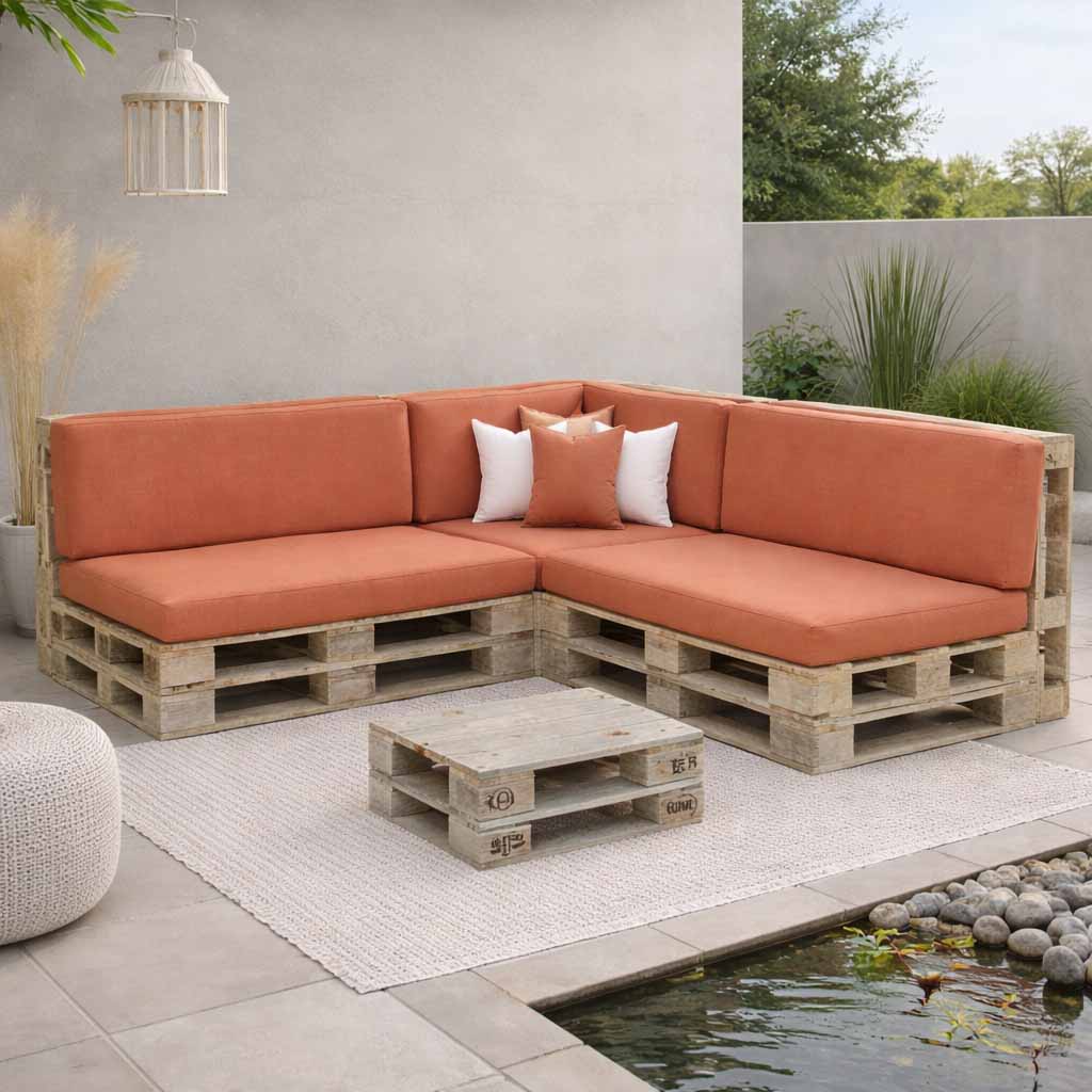 Palettenmöbel Paletten Sofa Lounge Sofa 3-teilig PERTHONE LS-3A Moderne 3-teiliges Paletten Sofa - Lounge Sofa Kombination Das PERTHONE LS-3A ist eine stilvolle 3-teilige Paletten Sofa Lounge Kombination, die modernes Design, natürliche Materialien und robuste Outdoor-Qualität perfekt miteinander verbindet. Gefertigt aus massivem, hochwertig verarbeitetem Paletten Neuholz bietet dieses Lounge-Set eine langlebige und zugleich optisch ansprechende Sitzlösung für deinen Außenbereich.Die drei Module lassen sich flexibel arrangieren – als gemütliche L-Lounge, offenes Sofa-Arrangement oder individuelle Relax-Kombination. wahlweise mit oder ohne Polster bestellbar Sitzpolster 10 cm stark, Rückenpolster 8 cm stark Microfaser "LILIAN" - perfekt für den Outdoor EinsatzDie gewünschte Farbe können Sie hier aussuchen und bestellen:Farbauswahl Polster Lieferzeit Polster 5-6 Wochen Maße:Breite: 200 x 200 cmz.B. Tiefe: 80 cmHöhe: 76 cmSitzhöhe: 35 cmSitztiefe: 58 cmGewicht gesamt: 120 KgMaterial:Neuholz Kiefer / Fichte, Standard Auslieferung in Vintage gebeizt gerne auch unbehandelt naturAuf Wunsch auch mit neutralen Klötzen ohne BrandingEigenschaften:Bestehend aus 2x 120cm Sofa & 1x 80 cm EckmodulJedes Element mit 4 Rollen (2 davon mit Feststellfunktion)Sitzhöhe erweiterbar auf 45 cm (siehe Zubehör)Optional: seitlicher Einschub TischLieferzustand:Originalverpackt & NeuArtikel werden fertig montiert geliefert (Ausnahme: Rollen liegen transportbedingt bei)Dekorationen im Lieferumfang nicht enthalten Versand: Versandkosten (nach Volumen / Gewicht) sind im jeweiligen Warenkorb ersichtlich Versand auf Inseln und ins Ausland nur auf Anfrage
