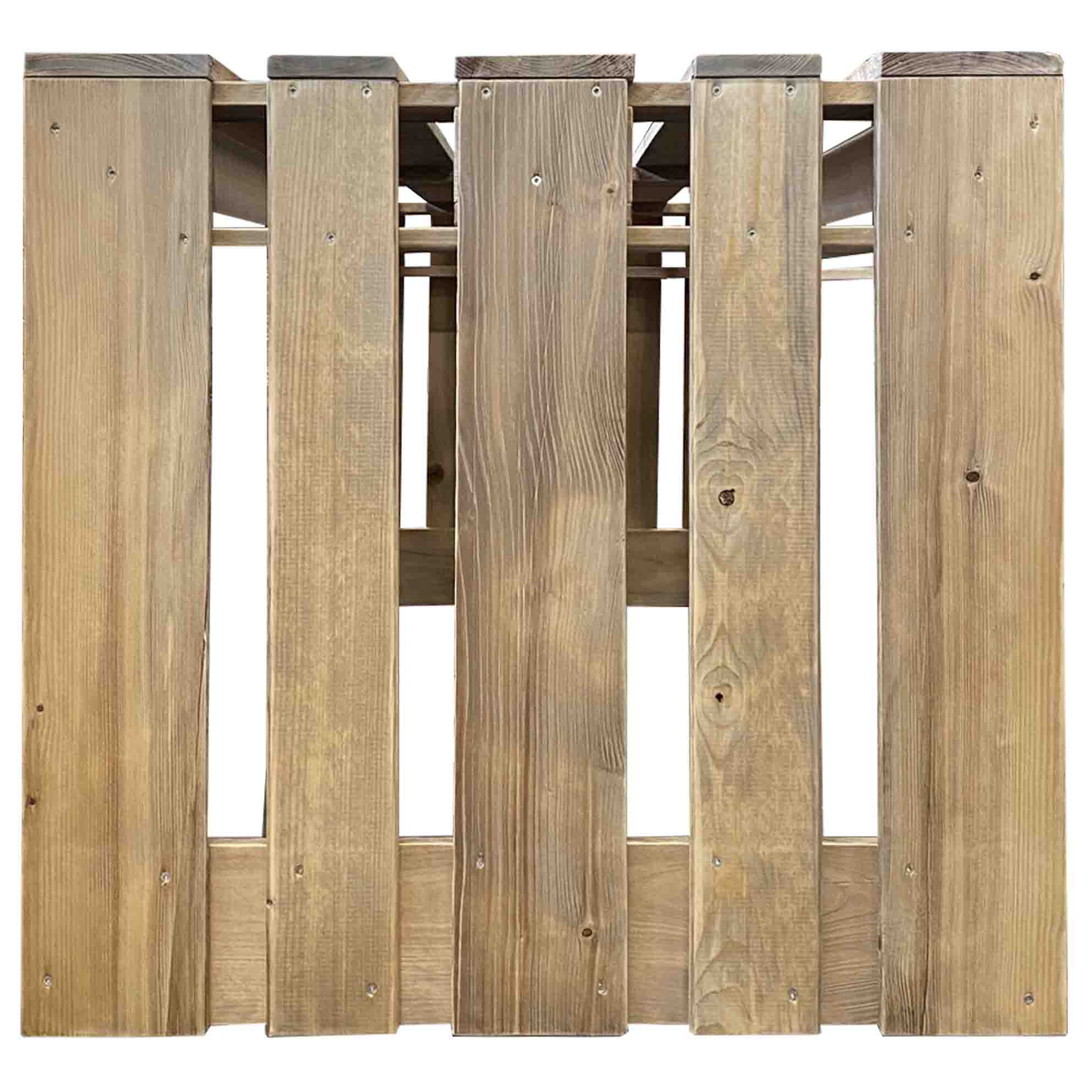 Palettenmöbel: massiv gebauter Stehtisch mit 2 Bänken in typischer Paletten Optik, Neuholz Vintage gebeizt. Bestehend aus:2x Sitzbank CALABRIA Art. 2600611x Steh-Tisch CALABRIA Art. 260062 Maße: Tisch: Breite: 120 cm Tiefe: 80 cm Höhe: 105 cm Gewicht: 66 Kg Bank: Breite: 120 cm Tiefe: 47 cm Höhe: 70 cm Sitzhöhe: 70 cm Gewicht: 28 Kg (Maße, Gewicht und Farbgebung können materialbedingt minimal abweichen) Material: Neuholz Kiefer / Fichte, Standard Auslieferung in Vintage gebeiztGerne auch unbehandelt naturAuf Wunsch auch mit neutralen Klötzen ohne Branding Eigenschaften:Belastbarkeit: 200 kg Lieferzustand: Originalverpackt & Neu Artikel wird fertig montiert geliefert Dekorationen im Lieferumfang nicht enthalten Versand: Versandkosten (nach Volumen / Gewicht) sind im jeweiligen Warenkorb ersichtlich Versand auf Inseln und ins Ausland nur auf Anfrage