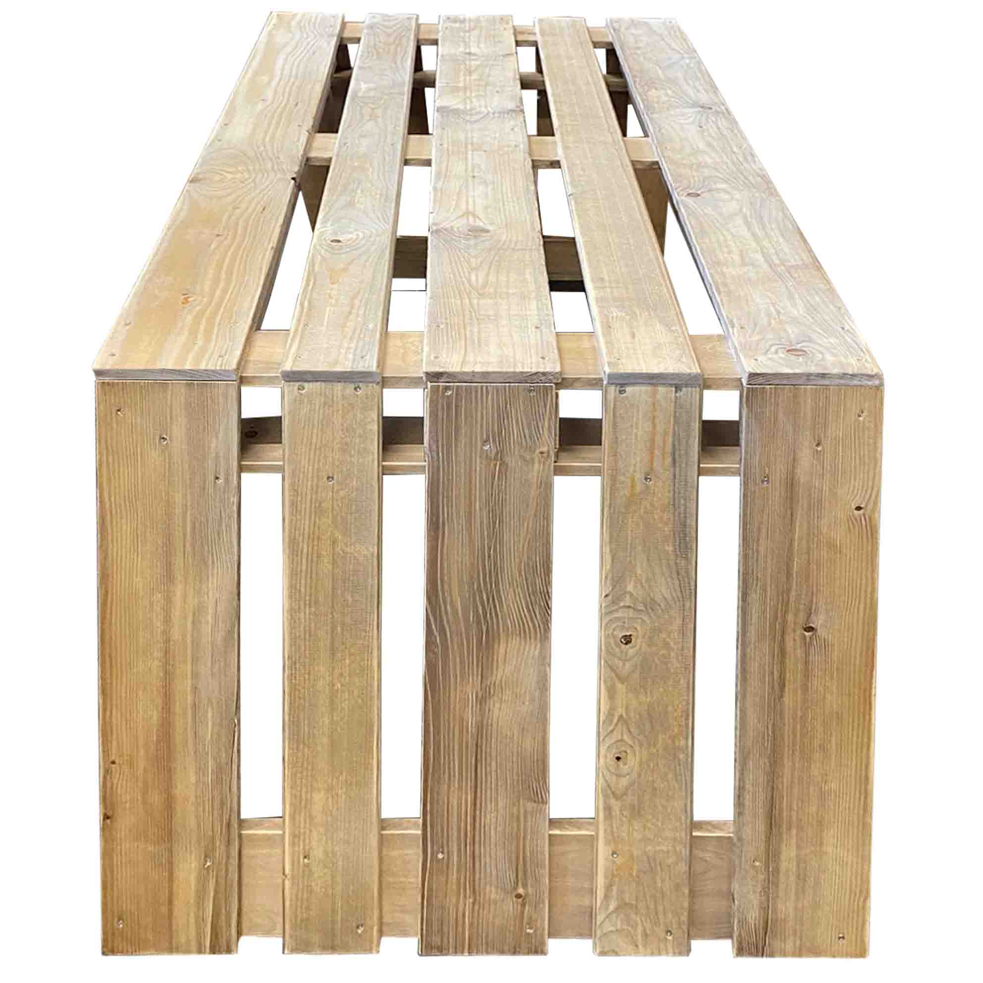 Palettenmöbel: Lounge- / Ess-Garnituer aus Neuholz, vintage gebeizt im typischen Paletten Design. bestehend aus:2x Sitzbank 1x Esstisch Maße: Tisch: Breite: 120-140-160-180-200 cm Tiefe: 80 cm Höhe: 75 cm Gewicht: 20 - 43 Kg Sitzbank: Breite: 120 - 200 cm Tiefe: 47 cm Sitzhöhe: 45 cm Gewicht: 15-25 Kg (Maße, Gewicht und Farbgebung können materialbedingt minimal abweichen) Material: Neuholz Kiefer / Fichte, Standard Auslieferung in Vintage gebeiztGerne auch unbehandelt naturAuf Wunsch auch mit neutralen Klötzen ohne Branding Lieferzustand: Originalverpackt & Neu Artikel werden fertig montiert geliefert Dekorationen im Lieferumfang nicht enthalten Versand: Versandkosten (nach Volumen / Gewicht) sind im jeweiligen Warenkorb ersichtlich Versand auf Inseln und ins Ausland nur auf Anfrage