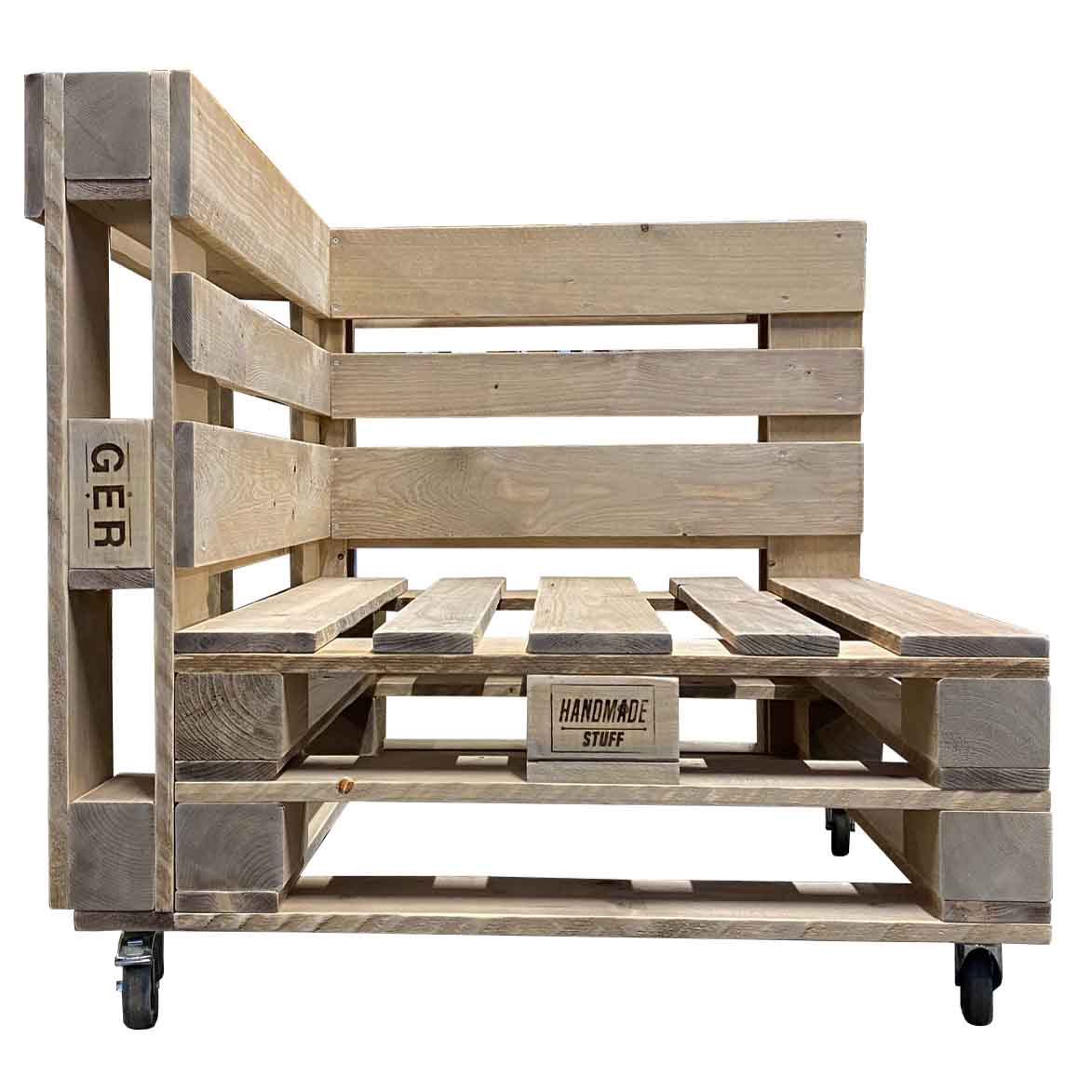 Palettenmöbel: "Old School" Paletten Sofa Eck-Modul, mit senkrechter Rückenlehne in den klassischen Maßen gebaut.
