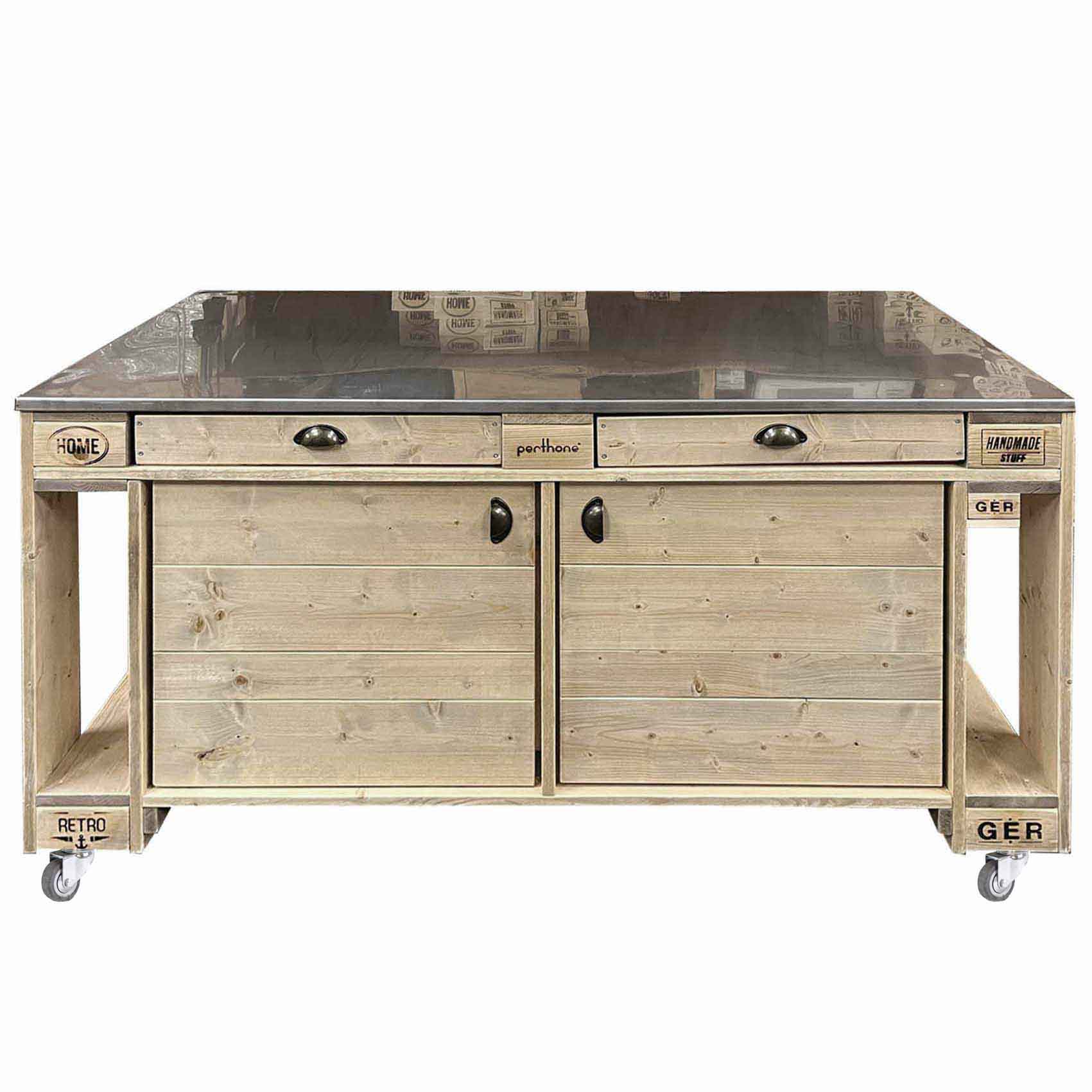 - Höhe: 91 cm Arbeitsfläche (incl. Rollen)