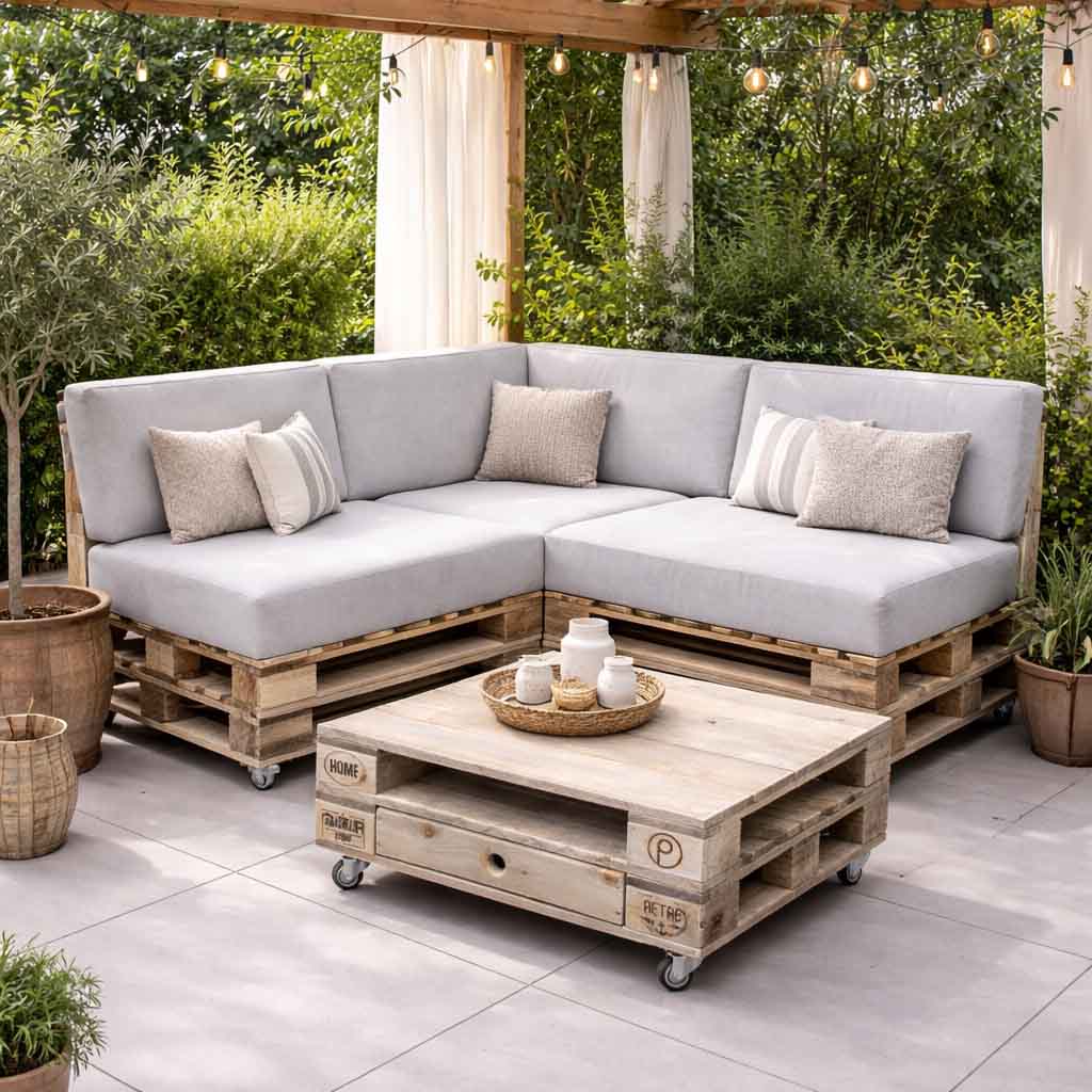 Das PERTHONE LS-3C ist ein modernes, dreiteiliges Paletten Sofa Lounge Set, das handgefertigte Qualität, massives Naturholz und zeitloses Outdoor-Design perfekt kombiniert. Mit seiner kompakten Größe und der robusten Bauweise bietet es eine langlebige und stilvolle Lösung für Garten, Terrasse oder Wohnbereich.