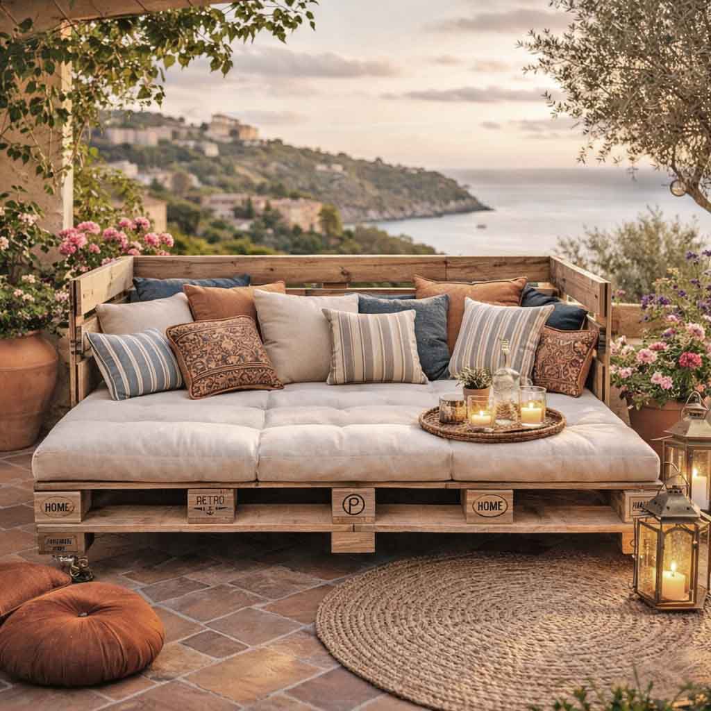 Multifunktionales Palettenbett und Lounge‑Sofa