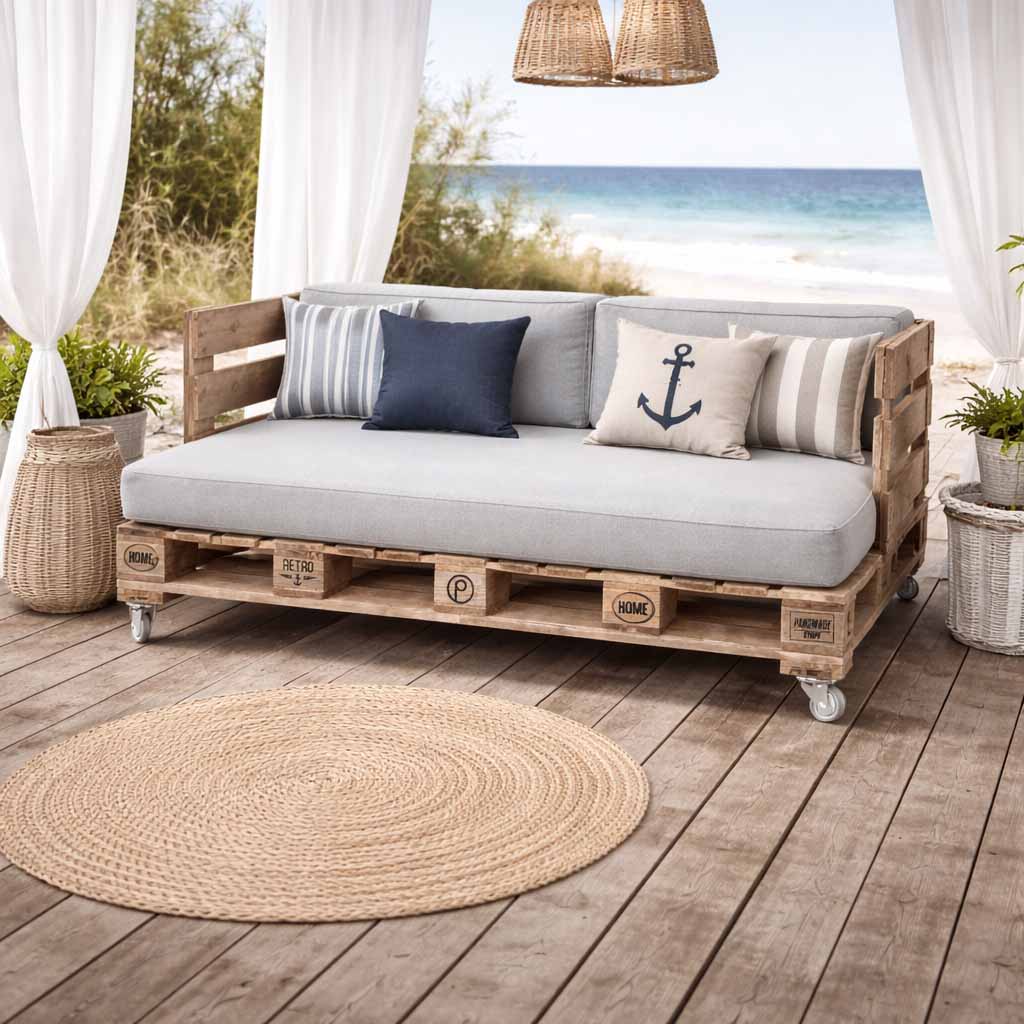 Das Palettenmöbel Palettenbett WAIMALU verbindet hochwertiges Handwerk mit modernem Lounge-Komfort. Ob als stilvolles Daybed, gemütliches Gartenbett oder elegantes Indoor-Loungesofa – WAIMALU ist ein echter Blickfang, der Natürlichkeit, Stabilität und zeitloses Design perfekt miteinander vereint.