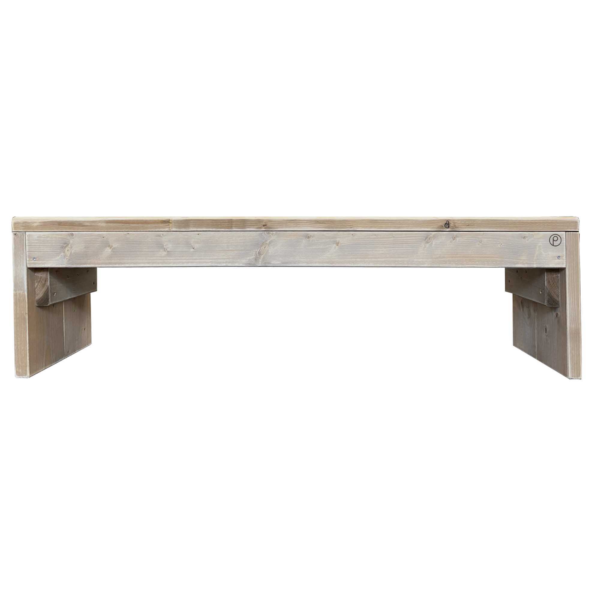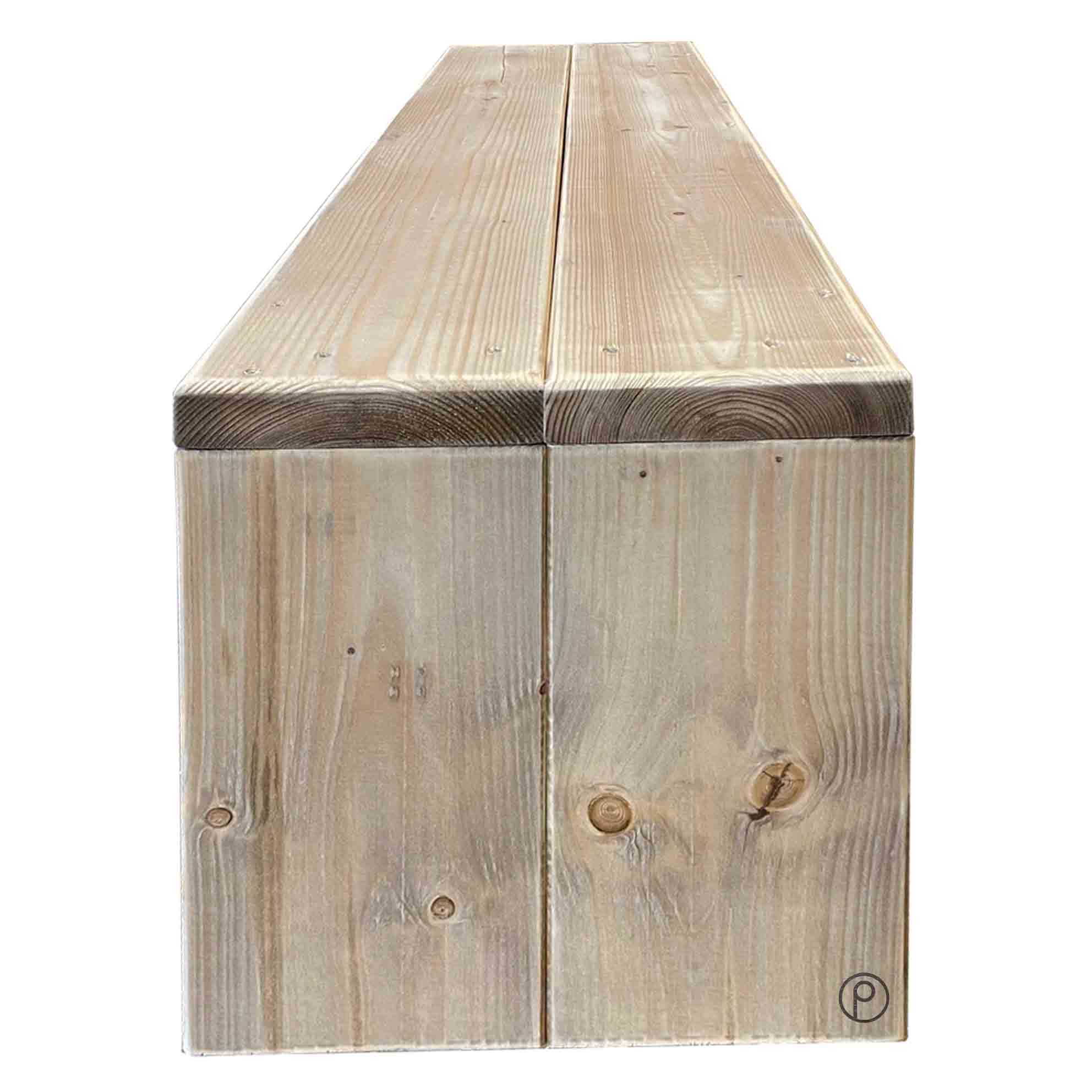 Bauholz Möbel: Massive Sitzbank aus Neuholz im typischen Bauholz Design
